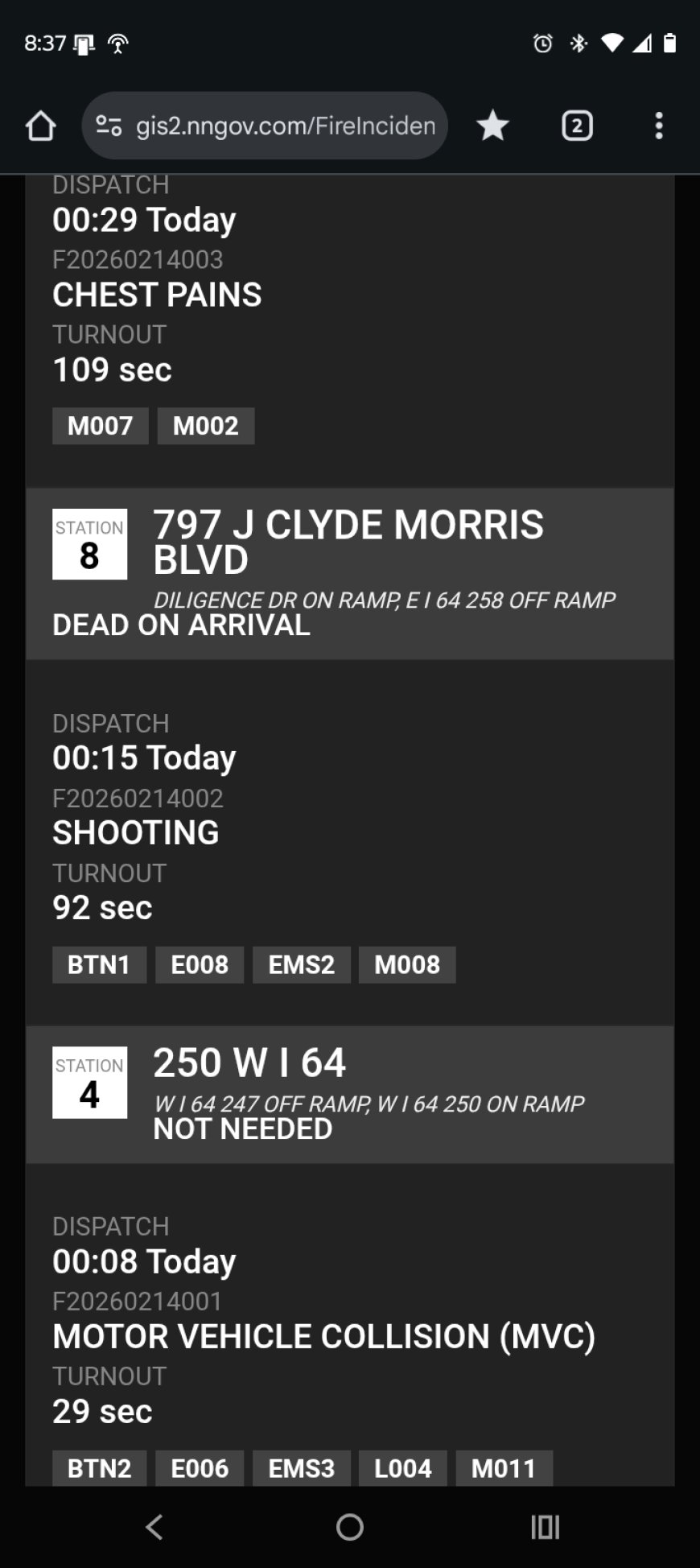 Editors Note 2/16/2026 On the same evening, a separate homicide occurred in the neighboring city of Hampton and received widespread media coverage.Three days later, however, none of the published reports on the Newport News incident have been updated. Every article continues to list an incorrect address for the location.Official records from the city’s government-operated fire and EMS dispatch feed identify the scene as the Motel 6 on J Clyde Morris Blvd. The dispatch log explicitly names the business as “Motel 6,” and the corresponding fire/EMS scanner audio—publicly available—confirms the same location.The persistent discrepancy between the official records and the published news accounts remains unexplained. Notice in the screenshot of WAVY 10 website below, the timestamps have not changed plus the invalid street address. Screenshot was taken 2/16/2026 5:30 AM EST Other local media outlets have same incorrect information. The city does not want the crime reports about local motels getting out and the media is in on it, or at least thats how it seems